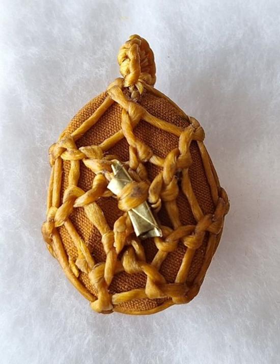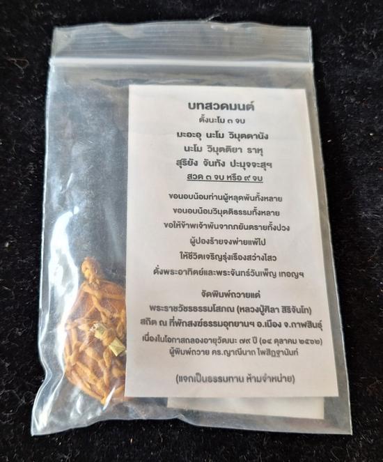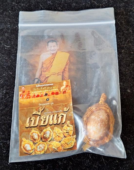เบี้ยแก้ หุ้มจีวร ถักเชือก หลวงปู่ศิลา วัดโพธิ์ศรีสะอาด มีแผ่นเลขกำกับ ฝังตะกรุดทองเหลือง พร้อมใบคาถา ปี2567 |