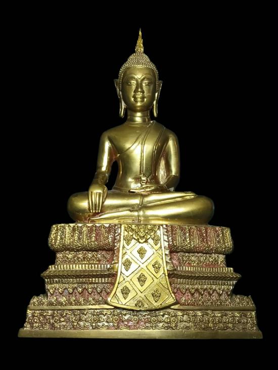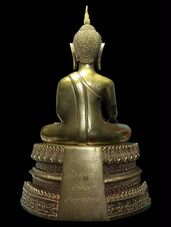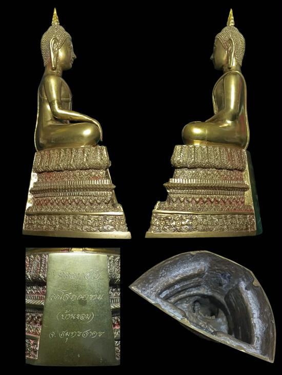 พระบูชาหลวงพ่อโต วัดโสภณาราม บ้านขอม สมุทรสาคร ปี 2535 รุ่นแรก ขนาดหน้าตัก 5 นิ้ว ทองผสม มีคราบยาขัดเดิมตามซอกองค์พระ สภาพสวยมากครับ