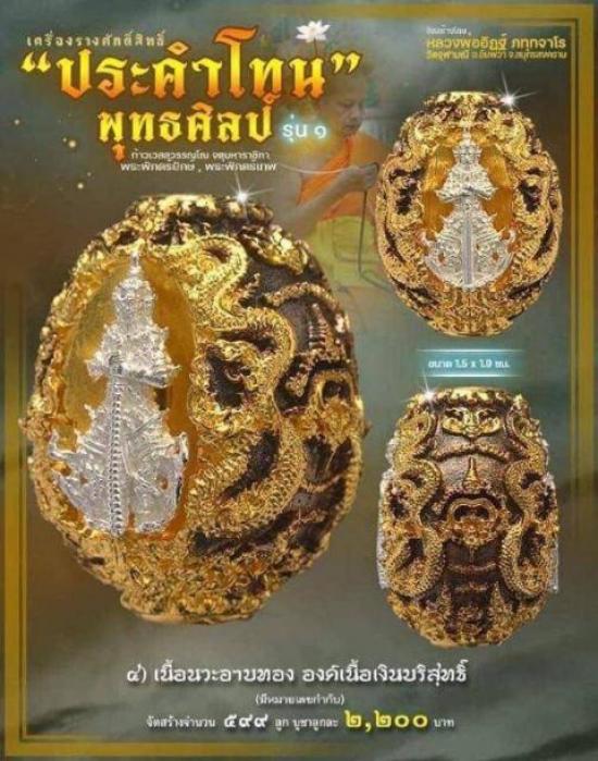 หลวงพ่ออิฎฐ์ ท้าวเวสสุวรรณ ประคำโทน พุทธศิลป์ รุ่นแรก เนื้อนวะอาบทอง องค์เงินบริสุทธิ์ สร้าง 599ลูก ปี65 ซีลเดิมลุ้นเลข