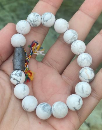 ( เคาะเดียวครับ ) ข้อมือ หินมงคล ฮาวไลท์ Howlite + ลูกสะกด หลวงพ่ออิฏฐ์ วัดจุฬามณี จ.สมุทรสงคราม