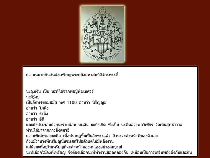 ความหมายยันต์หลังเหรียญพระคลังมหาสมบัติจักรพรรดิ์