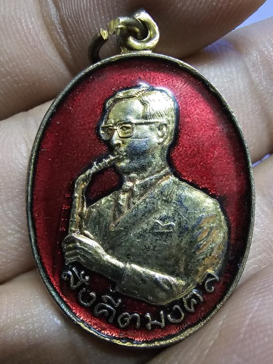 เหรียญในหลวงทรงแซ็ก รุ่นสร้างอาคารสดุดีมหาราชา ฉลองครบรอบ 21 ปี สมาคมดนตรีแห่งประเทศไทย ในพระบรมราชูปถัมภ์ เหรียญนี้เป็นเหรียญกะหลั่ยเงิน ลงยาสีแดง