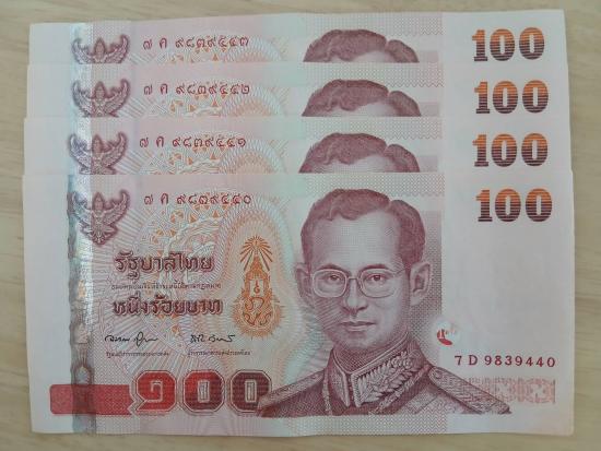 ธนบัตร 100 บาท เลขเรียง 4 ฉบับ ไม่ผ่านใช้ |
