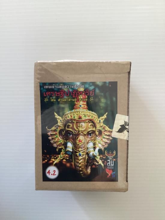 บูชาหน้ารถ เศียรพระพิฆเนศวร์ครอบ (เต็มเศียร) เศรษฐีปาฏิหารย์ วัดสุวรรณเจดีย์ จ.พระนครศรีอยุธยา เนื้อทองแดงเถื่อน เพ้นท์สีแบบโบราณ สูง 5.5 ซ.ม. ซีลเดิมยังไม่ได้แกะ |