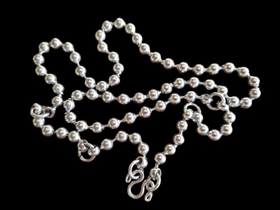 ++ สร้อยคอแสตนเลสงานเก่า ตราลูกศร ลายเม็ดไข่ปลาใหญ่ ยาวตลอดเส้น 28 นิ้ว ++