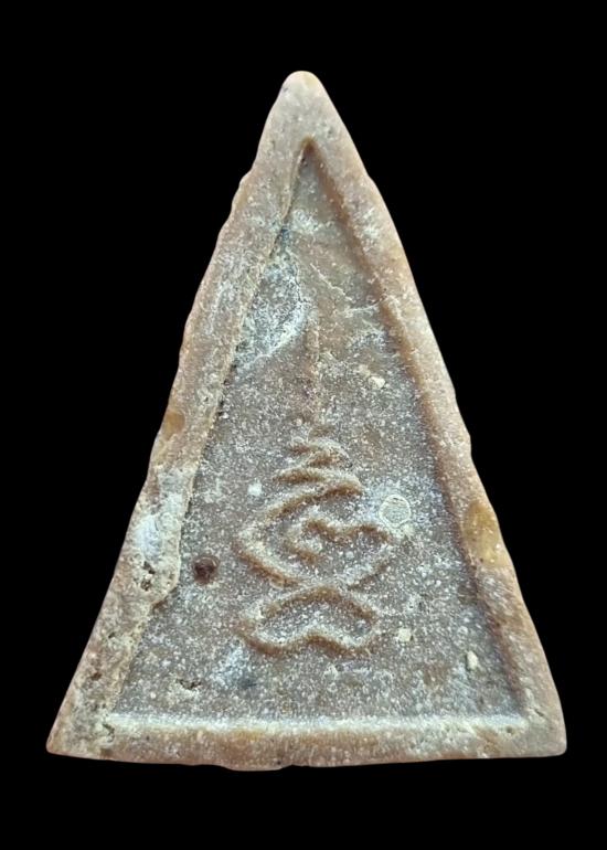 พระผงเนื้อแก่น้ำมันพิมพ์สามเหลี่ยม หลังยันต์เฑาะว์ พระชุดบ่อวิน หลวงปู่ทิมปลุกเสก |