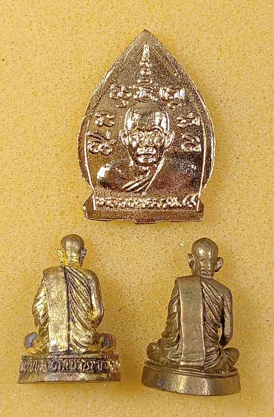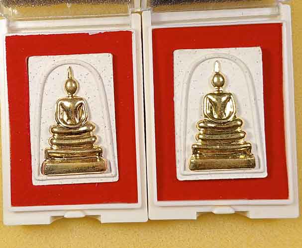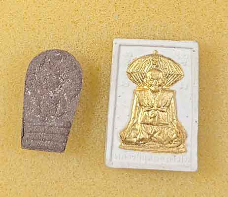 พระสมเด็จผงงาช้าง หลวงพ่อพัฒน์ วัดห้วยด้วน วาระกฐินปี2564 เนื้อผงหน้ากากทองเหลืองติดจีวร 2 องค์