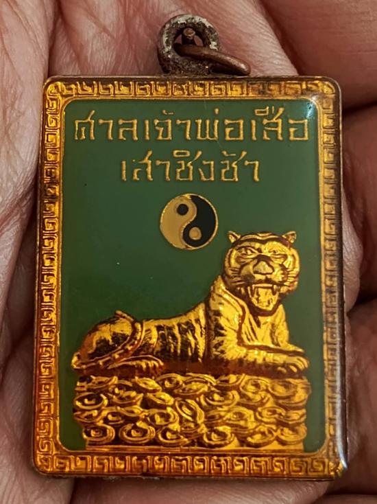 เหรียญ ปีเสือ กะไหล่ทองลงยา เคลือบเรซิ่นใส โชค ดี ม ี สุข หลังยันต์โป๊ยข่วย ศาลเจ้าพ่อเสือ เสาชิงช้า |