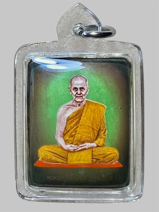 ล็อกเก็ตสี่เหลี่ยม หลวงปู่บัวเกตุ ปทุมสิโร รุ่นแรก ๒๕๖๗ ภายในบรรจุ เกศา+เล็บ ฉากเขียวหลังทองทิพย์ผิวรุ้ง