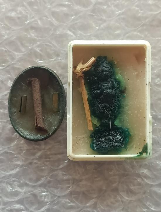 สีผึ้งจันทร์เพ็ญ (ดวงเศรษฐี) หลวงปู่คำสิงห์ ฐิตธัมโม ปี 2559 วัดปลาซิว จ.ศรีสะเกษ +สีผึ้งเดือนเพ็ญ พรายปิ่นทองปิ่นแก้ว หลวงปู่บุญสม ที่พักสงฆ์ร่มโพธิ์ทอง อำเภอบ่อทอง จังหวัดชลบุรี |