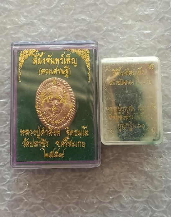 สีผึ้งจันทร์เพ็ญ (ดวงเศรษฐี) หลวงปู่คำสิงห์ ฐิตธัมโม ปี 2559 วัดปลาซิว จ.ศรีสะเกษ+สีผึ้งเดือนเพ็ญ พรายปิ่นทองปิ่นแก้ว หลวงปู่บุญสม ที่พักสงฆ์ร่มโพธิ์ทอง อำเภอบ่อทอง จังหวัดชลบุรี |