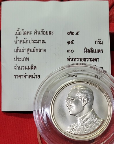 เหรียญเนื้อเงินพ่นทราย ในหลวง ร.9 สภาพสวย มีเอกสารเหรียญพร้อม