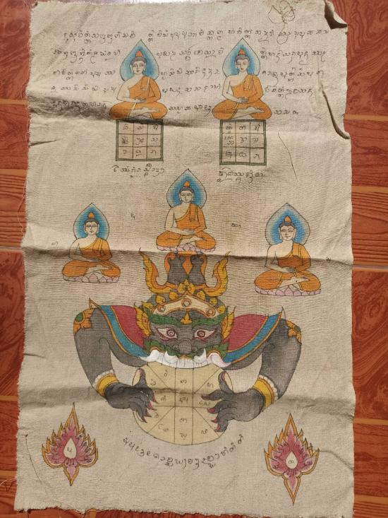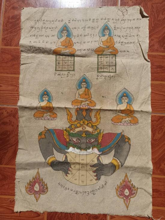 ผ้ายันต์ราหู เมตตา มหาลาภ สุดยอดงานพุทธศิลป์ ยุคใหม่ ลงสงาม มนต์เสน่ห์แห่งเครื่องราง งานเขียนมือ ล้วนๆ ขนาด 53*33 ซม. ***