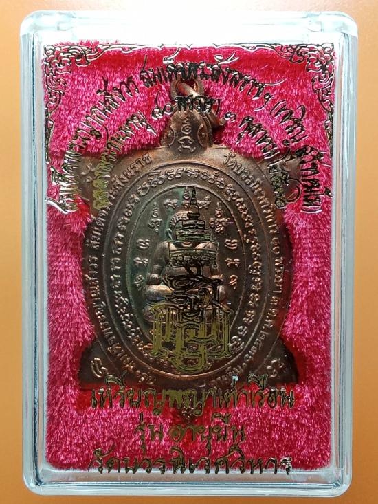พญาเต่าเรือน รุ่นอายุยืน ฉลองพระชนมายุ ๘๐ พรรษา ๓ ตุลาคม ๒๕๓๖ เนื้อทองแดงผสมชนวนพระสังกัจจายน์ญส.ปี ๒๕๓๐ (พระสังกัจจายน์ญส.รุ่นแรก ปี ๒๕๓๐ เป็นรุ่นสำคัญมีส่วนผสมของชนวนพระกริ่งบวรรังสี ๒๕๒๘ และชนวนพระกริ่งปวเรศ ๒๕๓๐ ล้วน ๆ โดยไม่มีชนวนพระรุ่นอื่นเจือปนเลย) พิธีพุทธาภิเษก-ชัยมังคลาภิเษก ณ พระอุโบสถวัดบวรนิเวศวิหาร หลวงปู่หลิว ปณฺณโก วัดไร่แตงทอง เทพเจ้าแห่งพญาเต่าเรือน ร่วมปลุกเสกในพิธี หลวงพ่อเปิ่น หลวงพ่อแย้ม วัดสามง่าม หลวงพ่อพูล วัดไผ่ล้อม หลวงพ่อไสว วัดปรีดาราม หลวงพ่อแช่ม วัดดอนยายหอม หลวงพ่อยิด วัดหนองจอก หลวงพ่อสง่า วัดบ้านหม้อ ฯลฯ ร่วมพิธี เคาะเดียว พระมาพร้อมกล่องเดิม