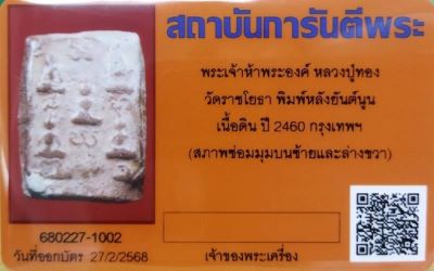 พระเจ้า 5 พระองค์ หลังยันต์นูน ลป.ทอง วัดราชโยธา กรุงเทพฯ ปี 2460 |
