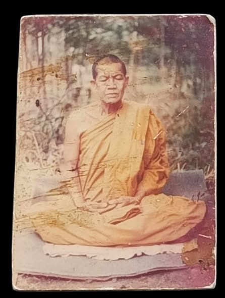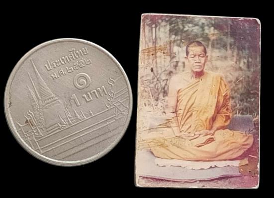 รูปถ่าย หลวงพ่อคำพอง ติสฺโส ( พระครูสุวัณโณปมคุณ ) วัดถ้ำกกดู่ อ.หนองวัวซอ จ.อุดรธานี หลังแผ่นตะกั่วจารด้วยเหล็ก |