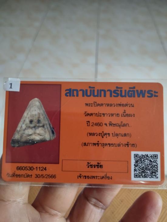 พระปิดตาสามเหลี่ยม ปี 2460 บัตรรับรองระบุ หลวงปู่ศุขวัดปากคลองมะขามเฒ่า ปลุกเสก วัดตาปะขาวหาย |