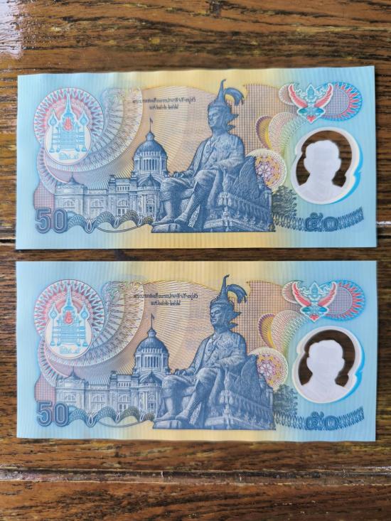 ธนบัตรที่ระลึก 50 บาท ฉลองสิริราชสมบัติครบ 50 ปี UNC สวยๆ เลขลงท้าย 700 และ 900 |