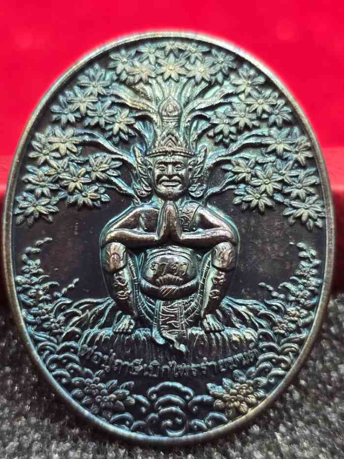 เหรียญพ่อปู่ฤาษีเบิกไพรรายมนต์ พระอาจารย์เลี้ยง วัดจอมเกษ เนื้อทองแดงผิวรุ้ง แจก ทานในพิธี เลข 59 |