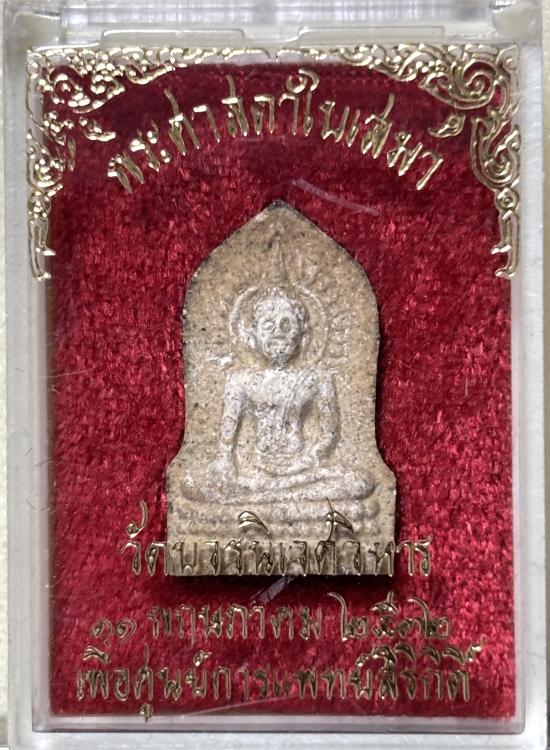 เปิดวัดใจ พระศาสดาใบเสมา(ภปร.) วัดบวรนิเวศวิหาร กทม. พ.ศ.๒๕๓๒ (เนื้อผงฯโรยเส้นพระเกศาสมเด็จพระญาณสังวร สมเด็จพระสังฆราชฯ.) พร้อมกล่องเดิม |