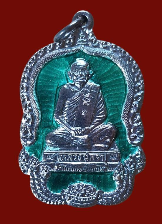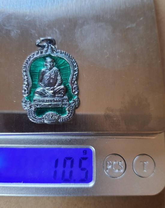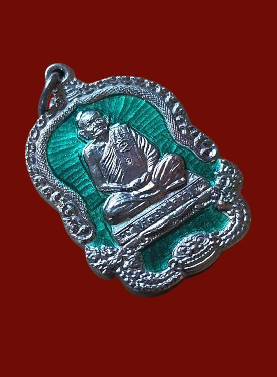 เหรียญหลวงปู่คร่ำ เนื้อเงินลงยาสีเขียว กล่องเดิม ปี2537(น้ำหนักเหรียญ 10.5กรัม)2... |