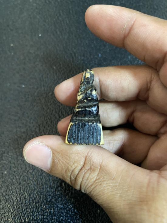 พระปิดตาเนื้อไม้แกะก้นอุดผง ลงรักปิดทอง เนื้อเก่าแห้งสภาพใช้ไม่รู้ที่ ขนาดสูงประมาณเกือบ 1 นิ้ว |