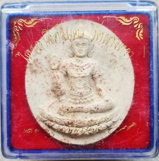 ท้าวจตุคามรามเทพ รุ่นไตรภาคีศรีนคร วัดนางตรา จ.นครศรีธรรมราช เนื้อผงอิทธิเจสีขาว ปี2548 ฝังผงแร่พลอยและโรยไม้ตะเคียน พร้อมกล่องเดิม
