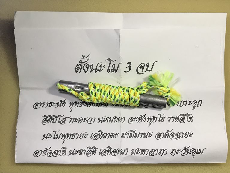 เนื้อตะกั่ว จารมือ นอกใน ตอกโค๊ด "เกาะ" เชือกเดิม ยาว 3 นิ้ว