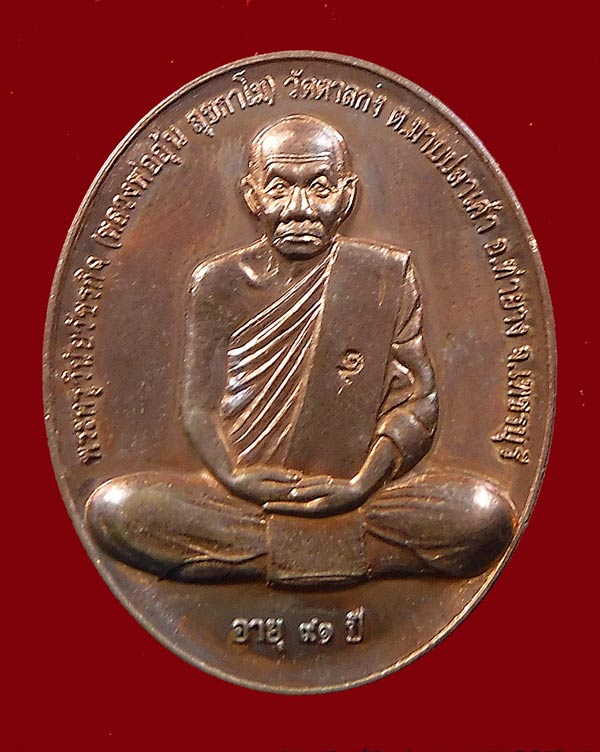 แดงที่เคาะแรก !!! เหรียญรุ่นสรงน้ำ พิมพ์ใหญ่ หลวงพ่ออุ้น วัดตาลกง ปี2550 + บัตรพระแท้