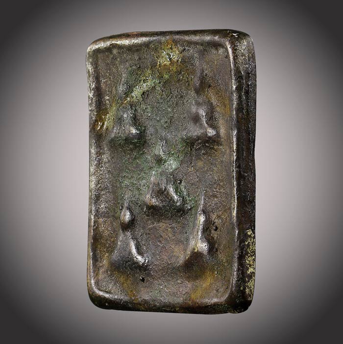 (วัดใจ)พระหล่อโบราณ พิมพ์พระเจ้า 5 พระองค์ หลังยันต์(ไม่ทราบเกจิที่สร้างไม่ยัดสำนัก)เนื้อโลหะผสม |