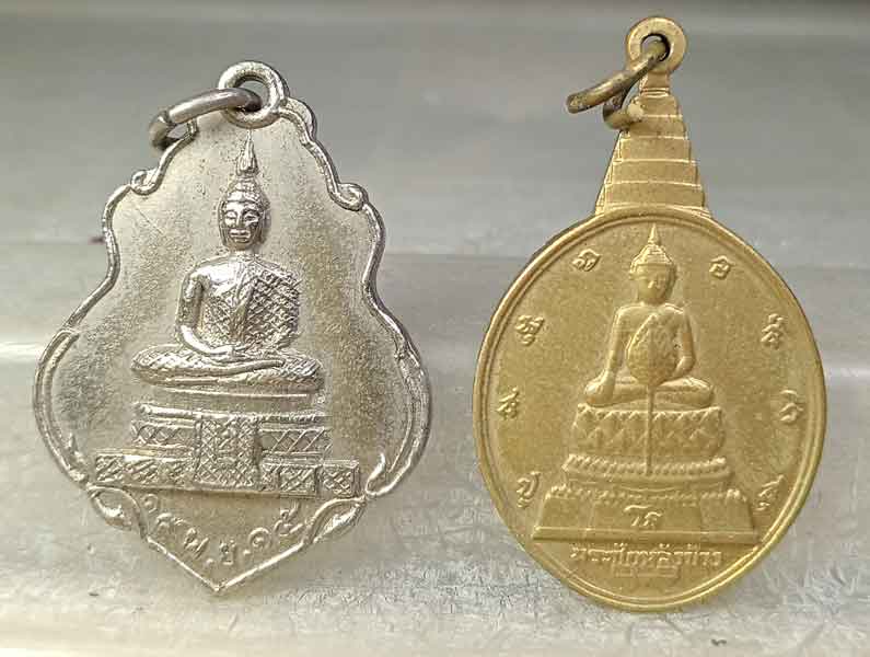 เหรียญวัดชลอ รุ่น ๑ ด้านหลังร.9 ทรงผนวช จ.นนทบุรี ปี 2515 + เหรียญพระชัยหลังช้าง |