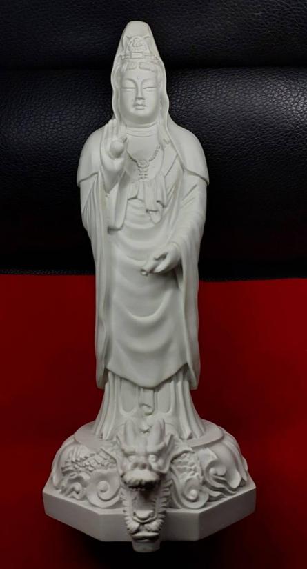 ****วัดใจ****เจ้าแม่กวนอิม ประทับบนมังกร เมืองเซนได ญี่ปุ่น สูง 8 นิ้ว เนื้อหินอ่อนเทียม