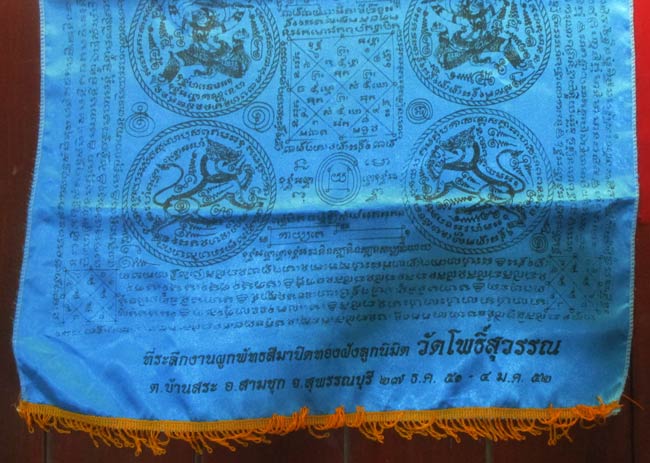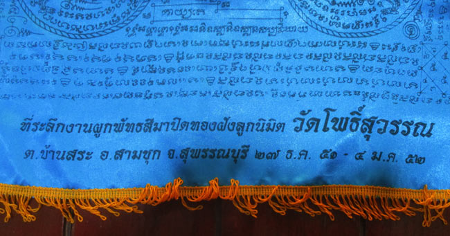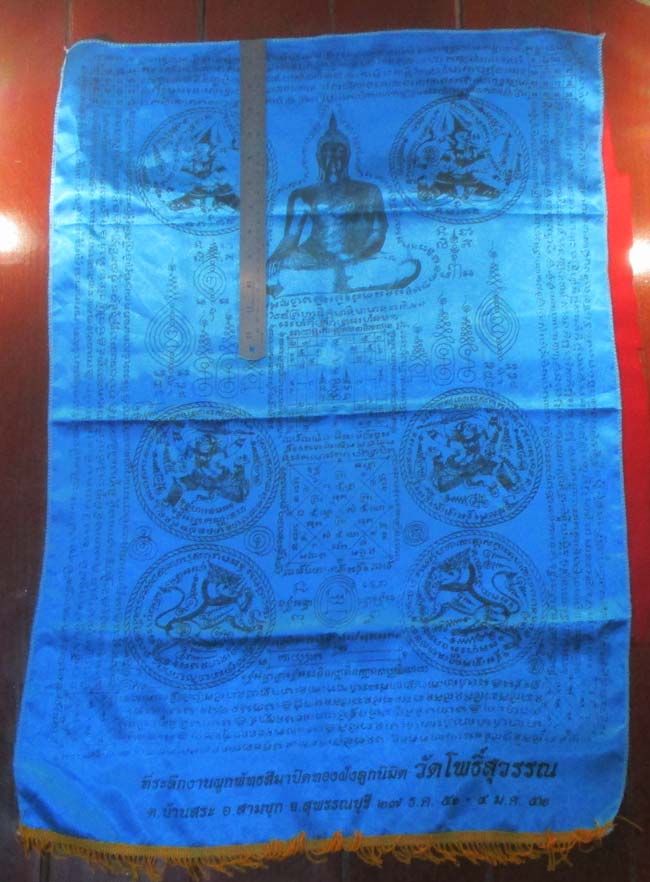 ผ้ายันต์ งานผูกพัทธสีมาปิดทองฝังลูกนิมิต วัดโพธิ์สุวรรณ จ.สุพรรณบุรี ครับ (พระบ้าน ครับ) |