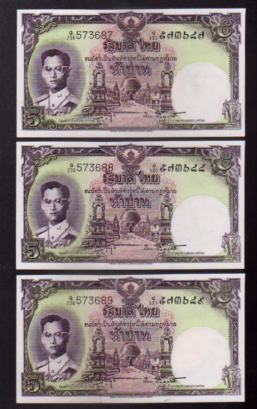 ## ธนบัตร 5 บาท ## โทมัส ## เรียงเลข 3 ฉบับ ##