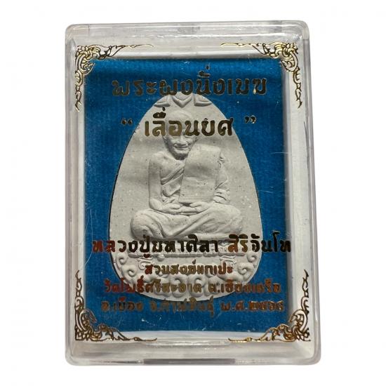 พระผงนั่งเมฆ รุ่น "เลื่อนยศ" หลวงปู่มหาศิลา สิริจันโท เนื้อผงพุทธคุณสีขาว สร้างในปี พ.ศ. 2564 กล่องเดิม |