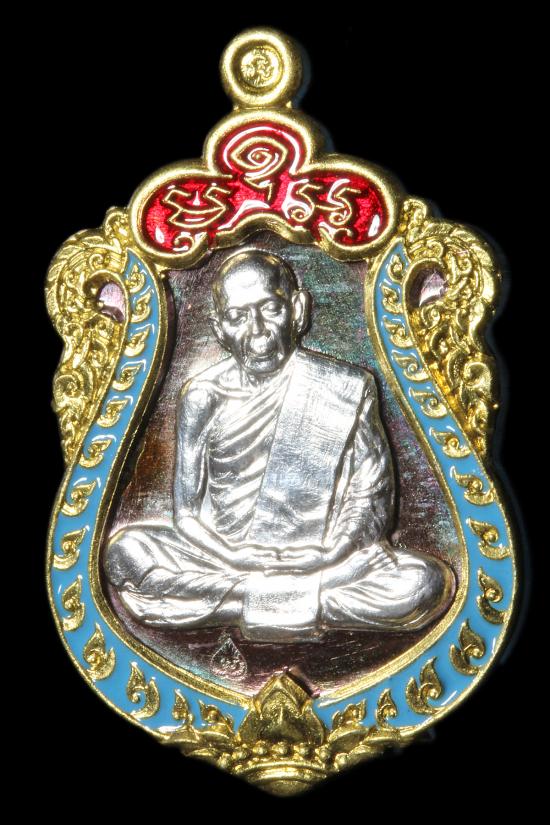 หลวงปู่ทิม วัดละหารไร่ เหรียญเสมา รุ่น มหาบารมี 59 เนื้อทองแดงมันผิวรุ้ง ลงยา หน้ากากเงิน ขอบปลอกลูกปืนลงยา หมายเลข 11879 กล่องเดิม |