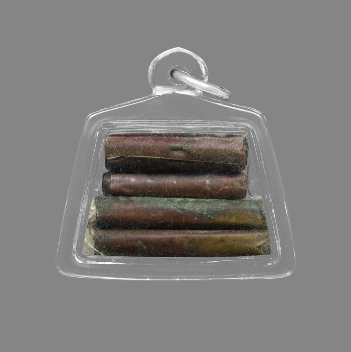 ตะกรุด 4 ดอก(ไม่ทราบที่) เนื้อทองแดง พร้อมเลี่ยมพลาสติก |