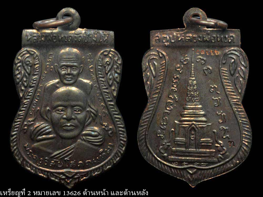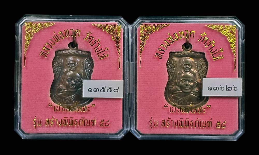 เหรีญเสมาเนื้อนวะ หลวงปู่ทวด วัดช้างให้ รุ่น สร้างพิพิทธภัณฑ์ 2558 หมายเลข 13558 และ 13626 พร้อมกล่องเดิมจากวัด(จำนวน2 เหรียญ)