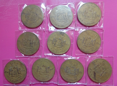 เหรียญกษาปณ์หมุนเวียน รัชกาลที่ 9 ชนิดราคา 50 สตางค์ ปี 2493 จำนวน 10 เหรียญ สภาพใช้ตามรูป.