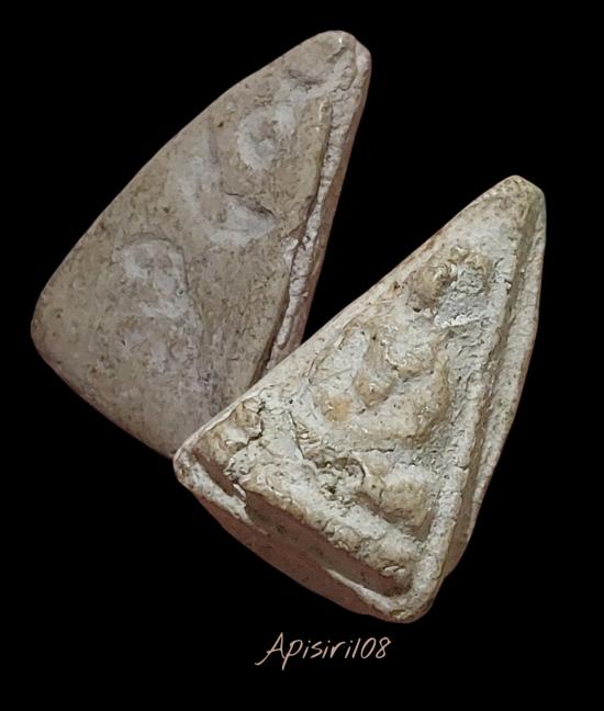 พระเนื้อผง พิมพ์สามเหลี่ยมเล็ก หลวงปู่เผือก วัดกิ่งแก้ว หลังยันต์ |