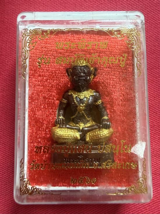 วัดใจไปเลย พระพิราพ หลวงปู่แสน วัดบ้านหนองจิก จ.ศรีสะเกษ รุ่นสมบัติเจ้าคุณปู่ เนื้อชนวนลงทอง หมายเลข 761 |
