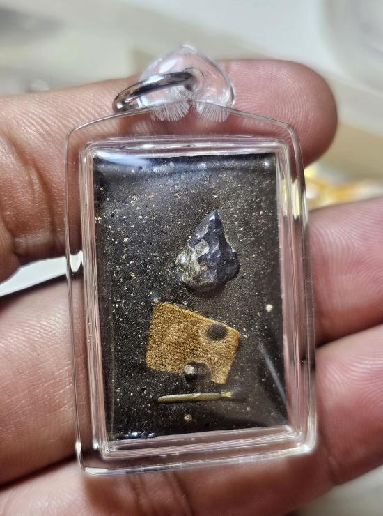 ล็อกเก็ตภาพขาวดำ ยุคต้น หลวงพ่อสมชาย วัดเขาสุกิม หลังแร่อุกาศมณี ตะกรุด จีวร