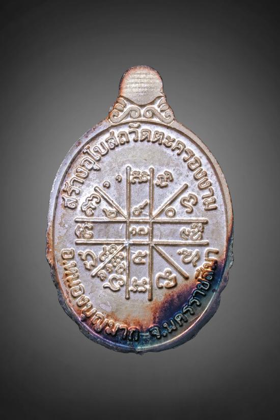 เหรียญเม็ดแตง หลวงพ่อคูณ รุ่น 1 กายเทพ วัดแจ้งนอก 2 เนื้อเงินลงยาส้มขอบน้ำเงิน สวยเดิมๆพร้อมกล่องคับ