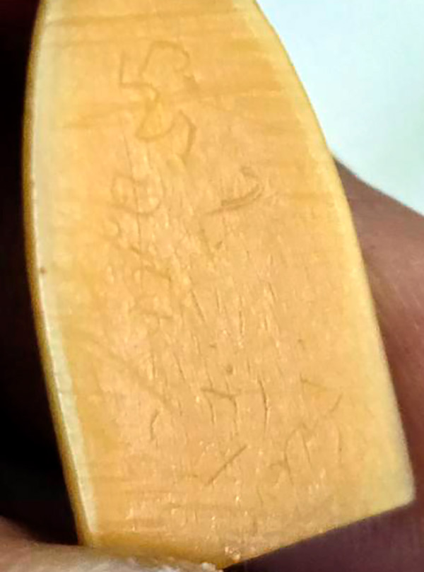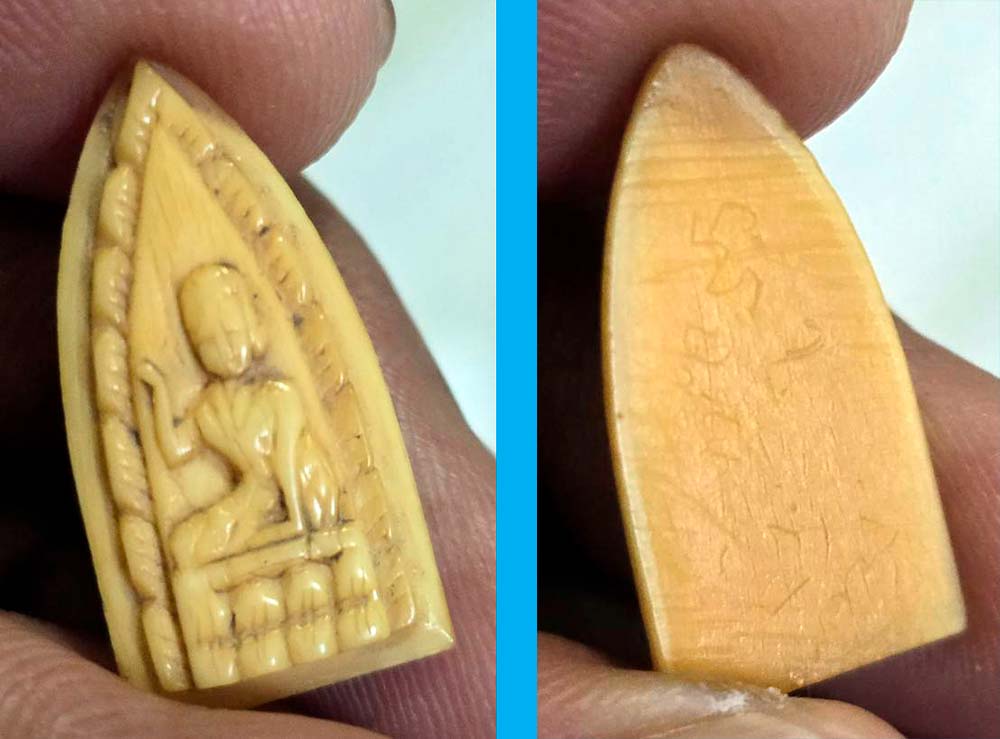 มีจารเก่า น่าจะเป็นรอยจารของหลวงพ่อเดิมท่านเอง เพราะเป็นการจารสำหรับลูกศิษย์เฉพาะราย ที่ไปกราบท่านเป็นการส่วนตัวแล้วขอความเมตตา (ไม่ใช่จารของหลวงพ่อน้อย)