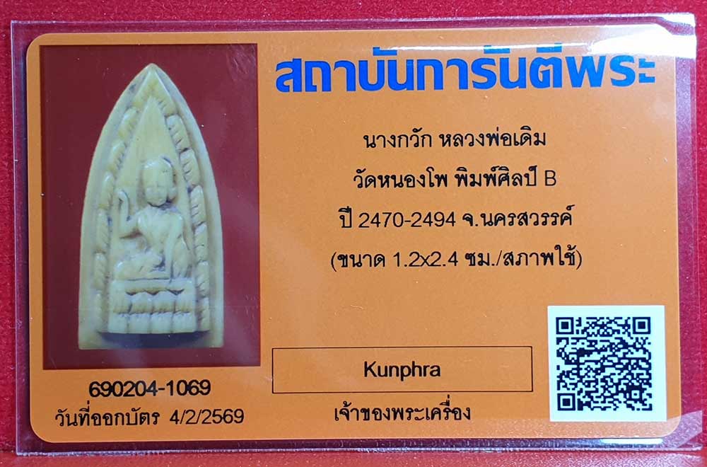 นางกวัก หลวงพ่อเดิม วัดหนองโพ จ.นครสวรรค์ พร้อมบัตรรับรองจีพระ เคาะเดียวแดง 3,500
