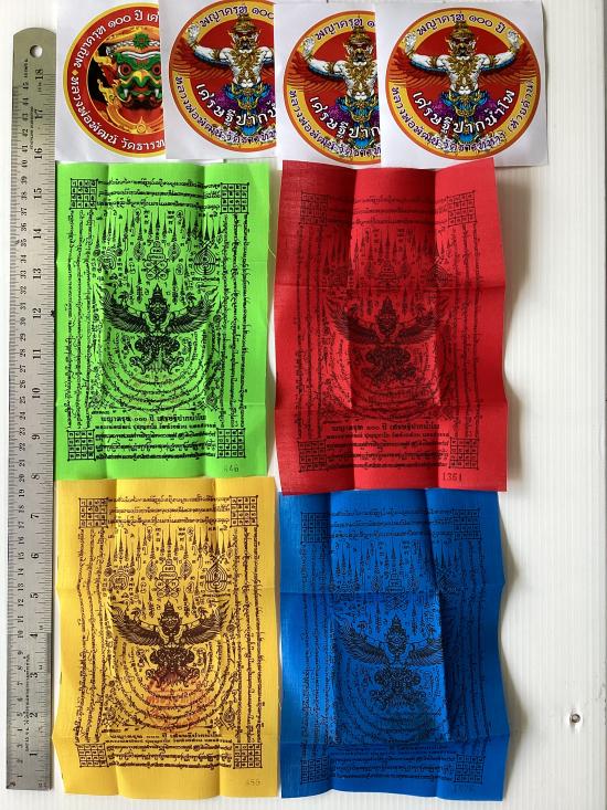 ผ้ายันต์ พญาครุฑ ๑๐๐ ปี เศรษฐีปากน้ำโพ หลวงปู่พัฒน์ วัดห้วยด้วน (วัดธารทหาร) จ.นครสวรรค์ ขนาด 5.5 นิ้ว x 8 นิ้ว ( 4 ผืน ) พร้อมสติ๊กเกอร์ 4 แผ่น |