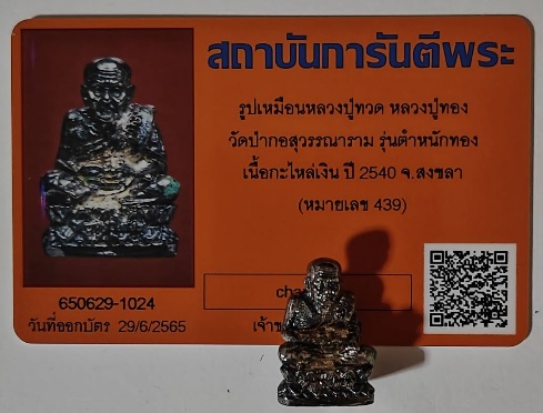 ยกชุด 2 องค์ หลวงปู่ทวด รุ่นตำหนักทอง หลวงปู่ทอง วัดป่ากอสุวรรณาราม รุ่นตำหนักทอง เนื้อกะไหล่เงิน หมายเลข 439 และเนื้อผง (ฝังตะกรุดเงินหมายเลข 0474) จ.สงขลา ปี 2540 |
