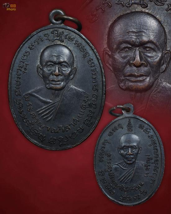 เหรียญสองหน้า ลพ.แดง-ลพ.เจริญ (วัดพลับพลาชัย) วัดเขาบันไดอิฐ ปี2514 เพชรบุรี พร้อมบัตรรับรอง