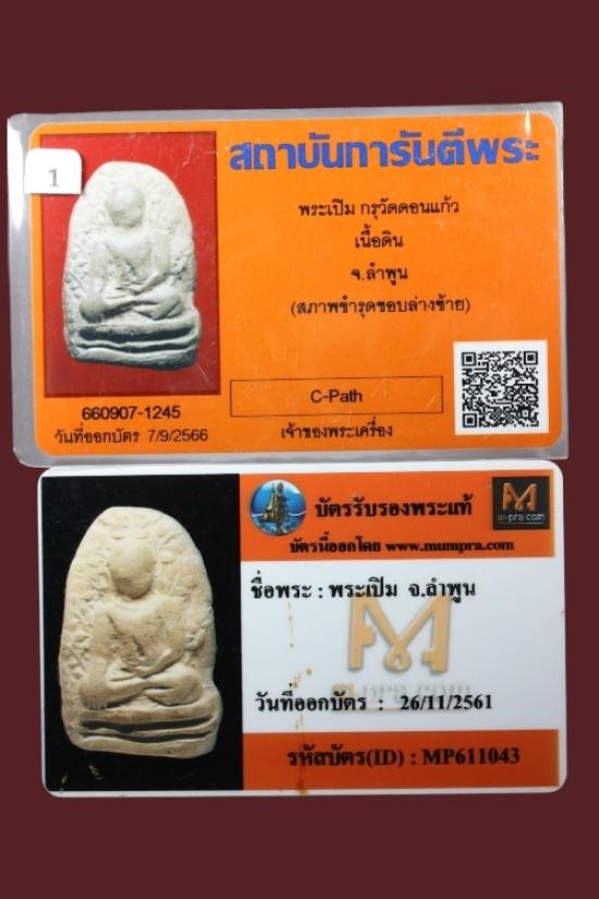 พระเปิม ลำพูน กรุดอนแก้ว พร้อมบัตรรับรอง 2 สถาบัน
