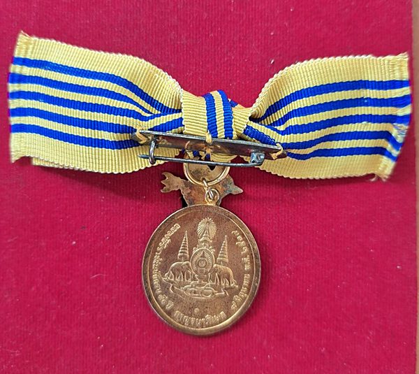 เหรียญที่ระลึกประดับแพรแถบ พระราชพิธีฉลองสิริราชสมบัติครบ 50 ปี ( กาญจนาภิเษก ) ปีพุทธศักราช 2539 เนื้อเงิน กะไหล่ทอง |